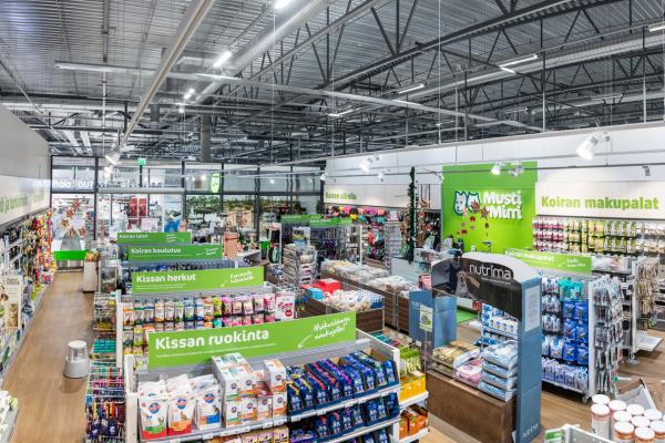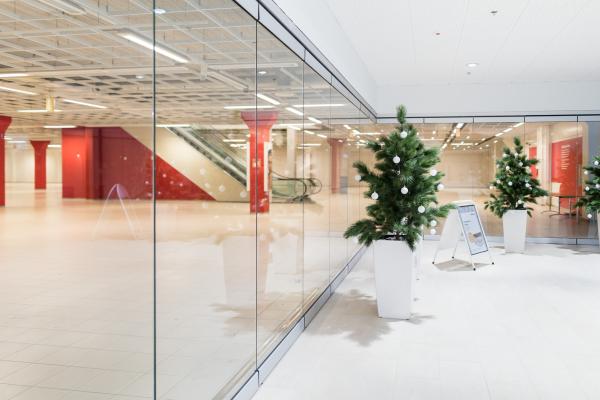 Liikekeskuksen saneeraus 9 500 m². Myymälöiden väliset seinät on toteutettu InLine-elementtiratkaisulla.